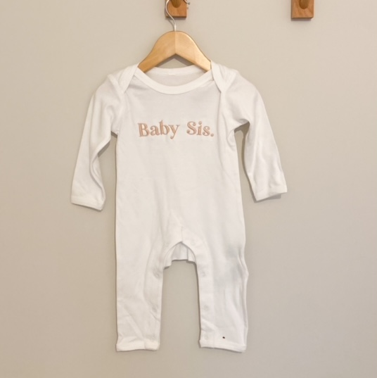 Gorgeous way to celebrate a new arrival and their role within the family and relationship to their siblings. Embroidery matches to our 'Big Sis, Lil Sis, Big Bro. Lil Bro' sweatshirts to really make a lovely statement. Base colour is fixed as ivory as image but please select from a choice of thread colours- Image shows rose gold thread. Please choose ivory sweatshirts too if you'd like to make the same colour combination for an older sibling.