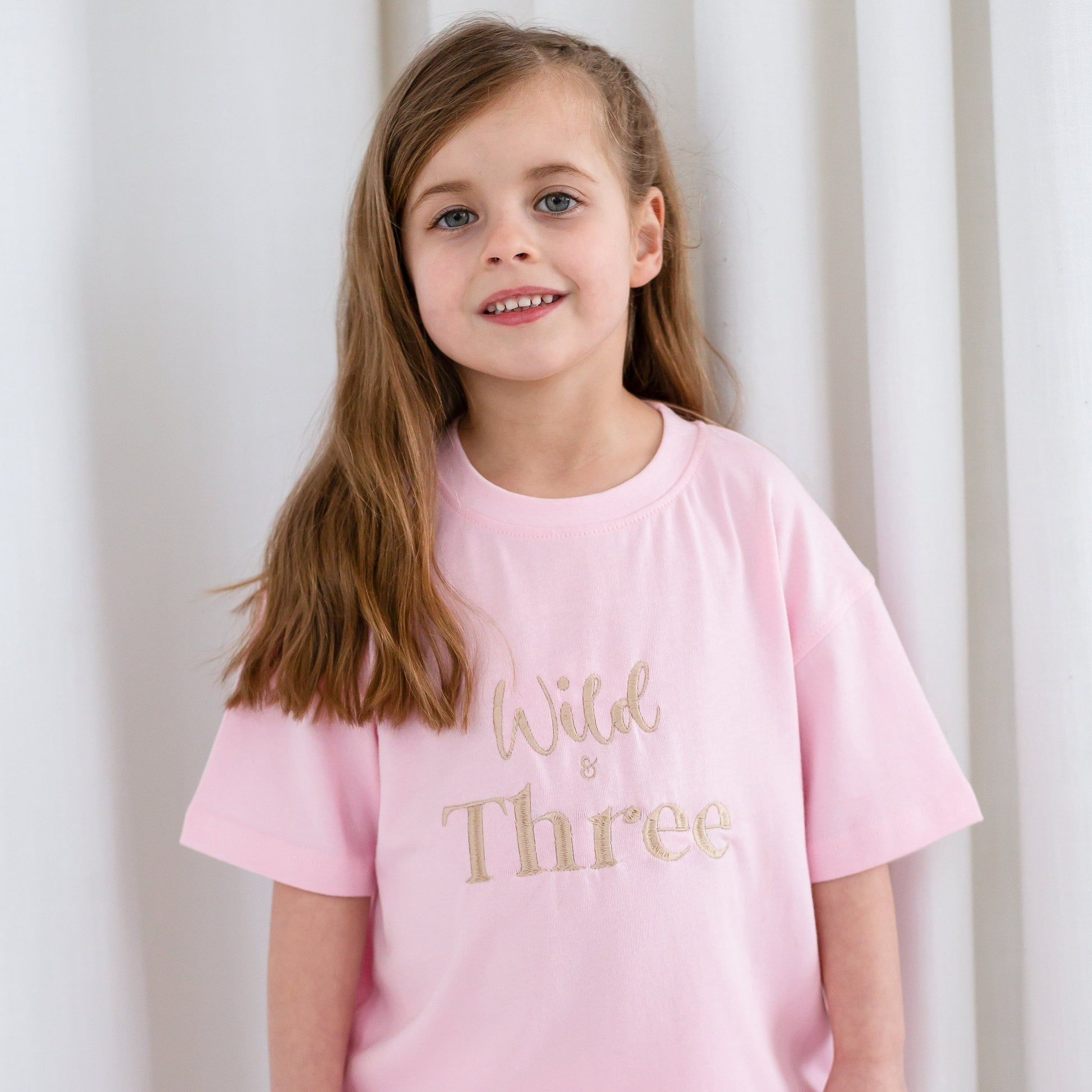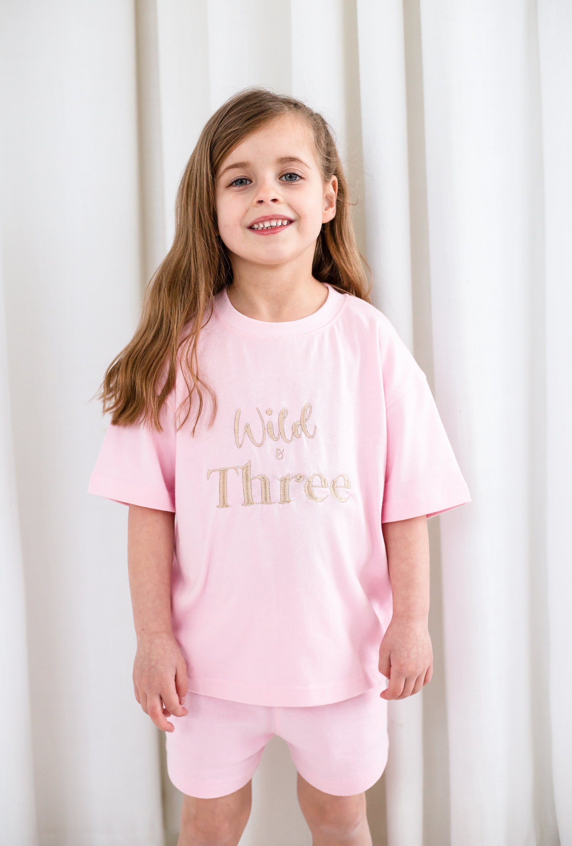 To complete the 'Minni' look, style back with our 'Child's summer jersey shorts' which come in pink and blue and are the exact same fabric as the t shirts so work beautifully as a set. Alternatively, try our 'Child's sweat shorts' which come in ivory and stone. The stone works nicely teamed back with copper or soft gold thread choices and model wears stone shorts in the images. Please type the descriptions into the search bar to find these styles easily and add to basket.