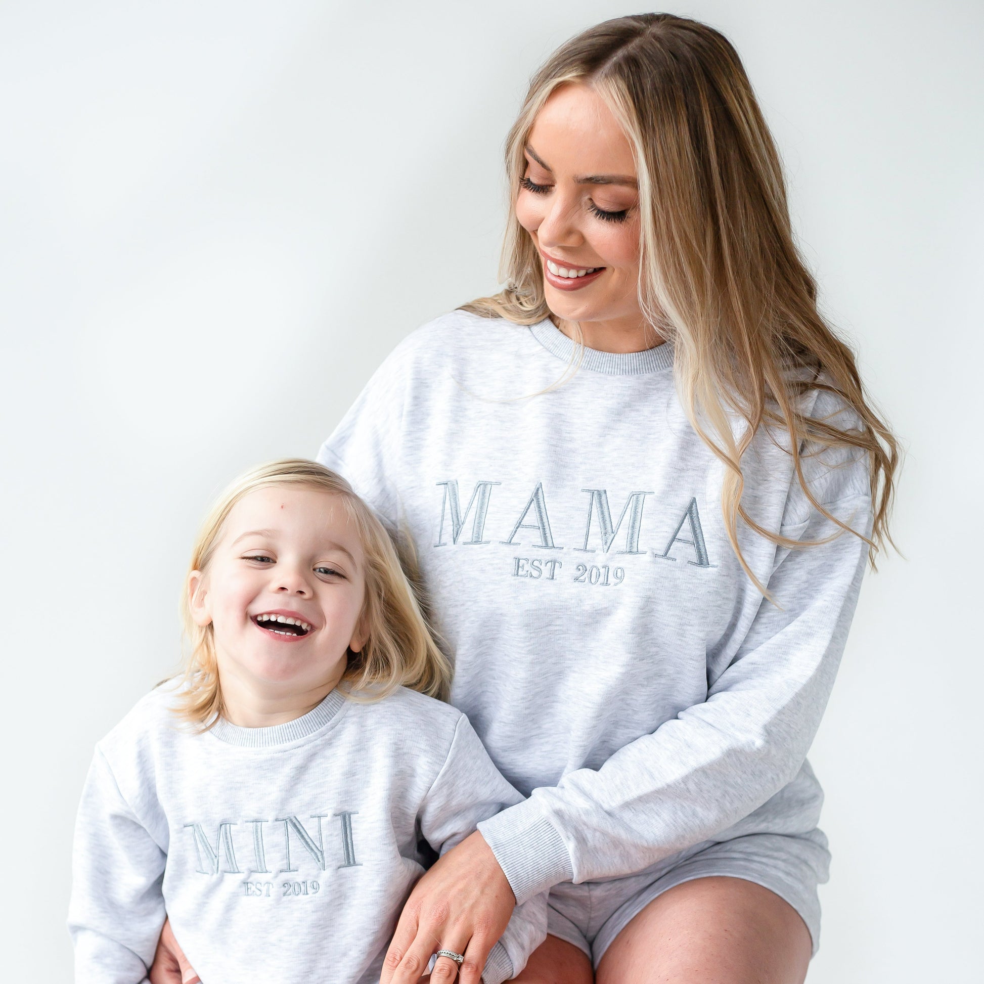 'MAMA EST.' ladies' embroidered matching mini me sweatshirt