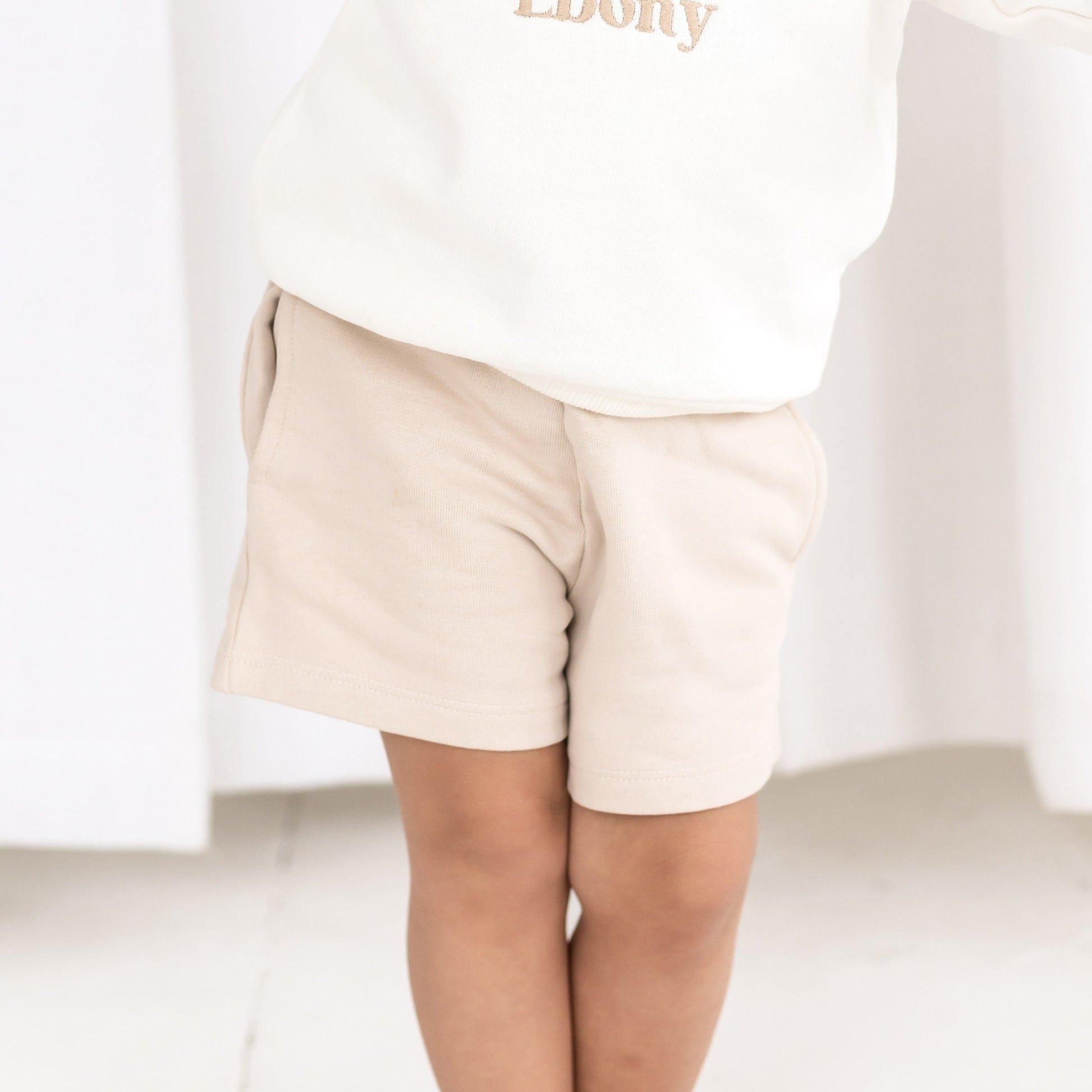 Child's sweat shorts - ash grey, stone, ivory, mocha and dark rose pink