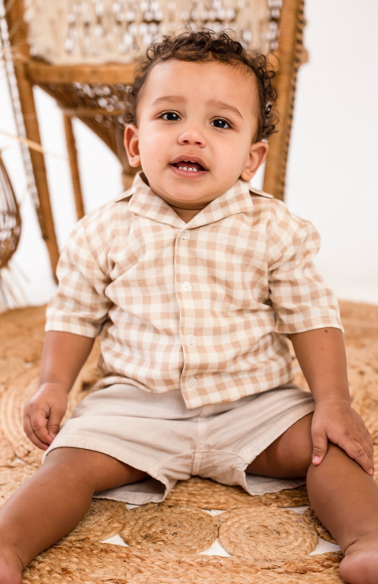 Adults dress, boys shirt and baby romper all available in matching fabric.
