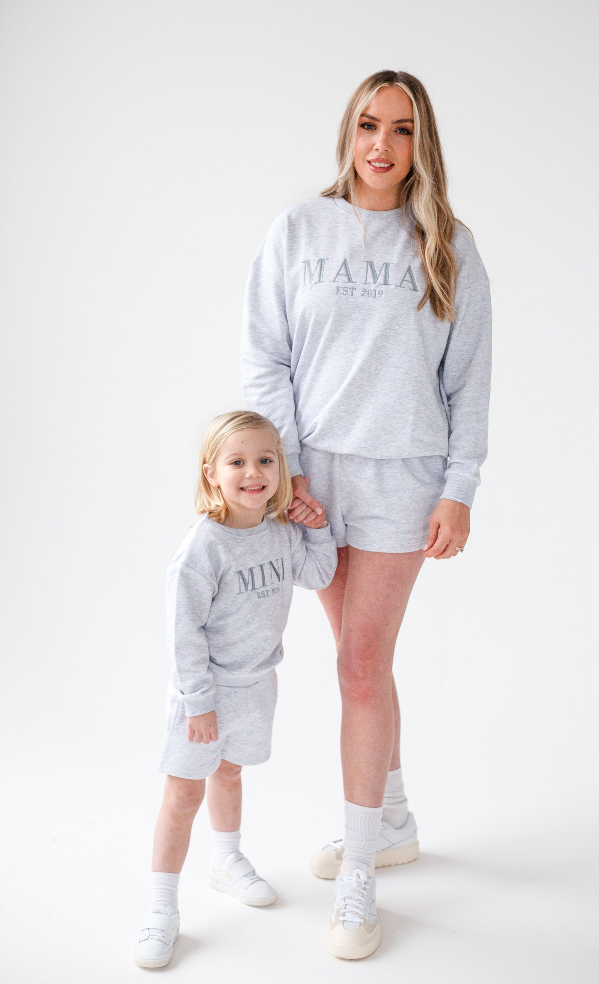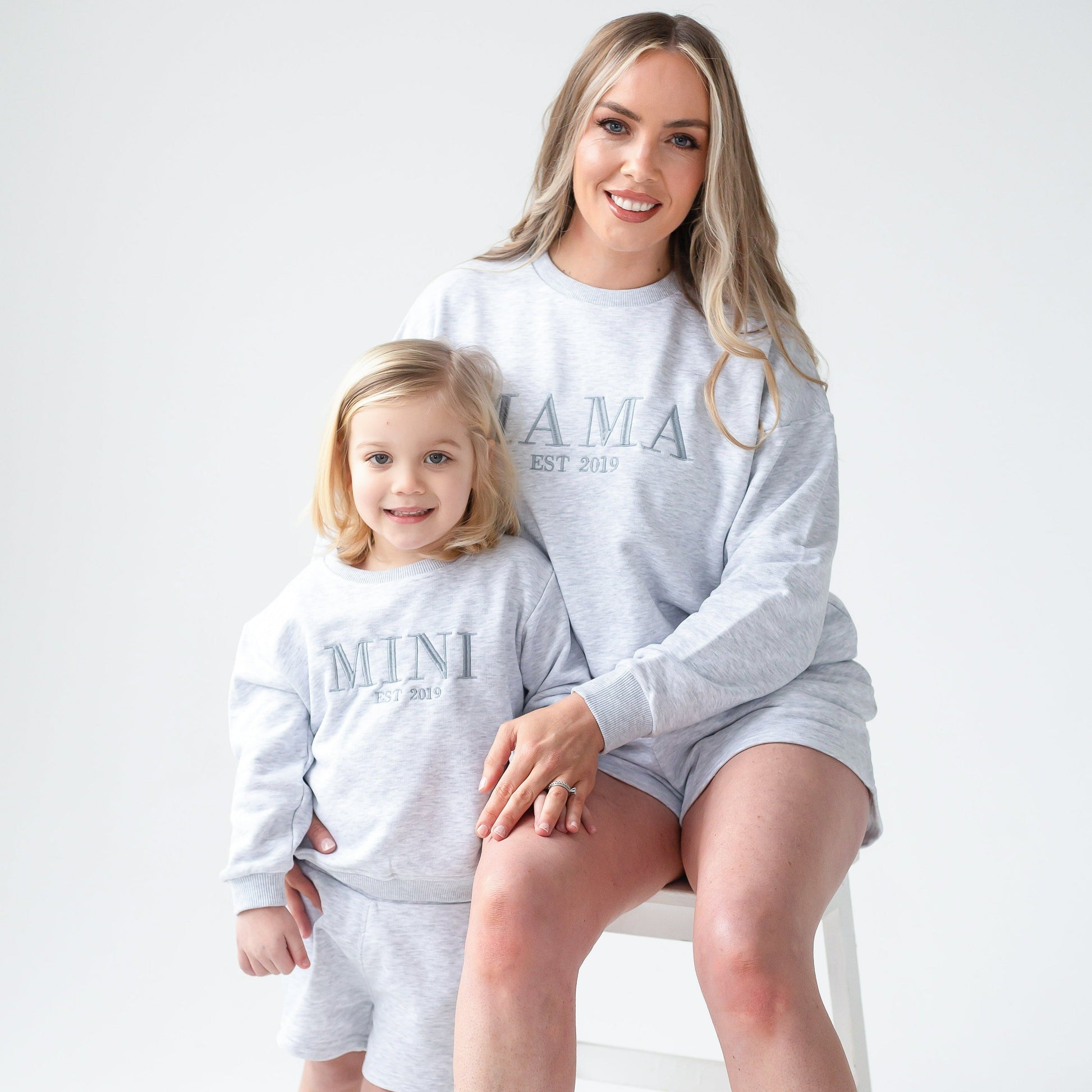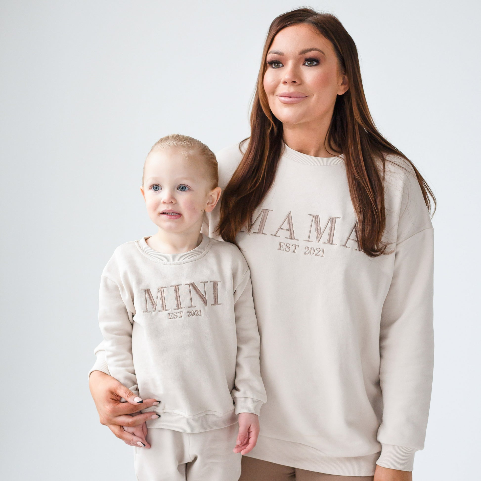 'MAMA EST.' ladies' embroidered matching mini me sweatshirt