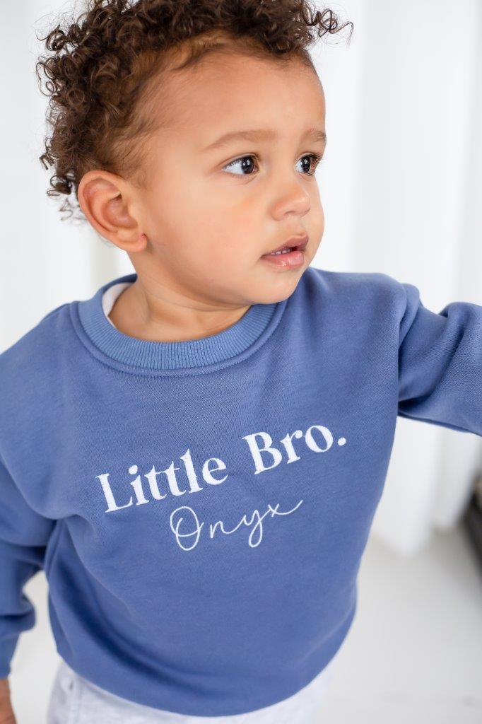 Style siblings up in these matching embroidered sweatshirts. Select 'Big/Little' from the dropdown This is the sister sweatshirt, brother sweatshirt is also available. We also have a babygro available in the same combination.