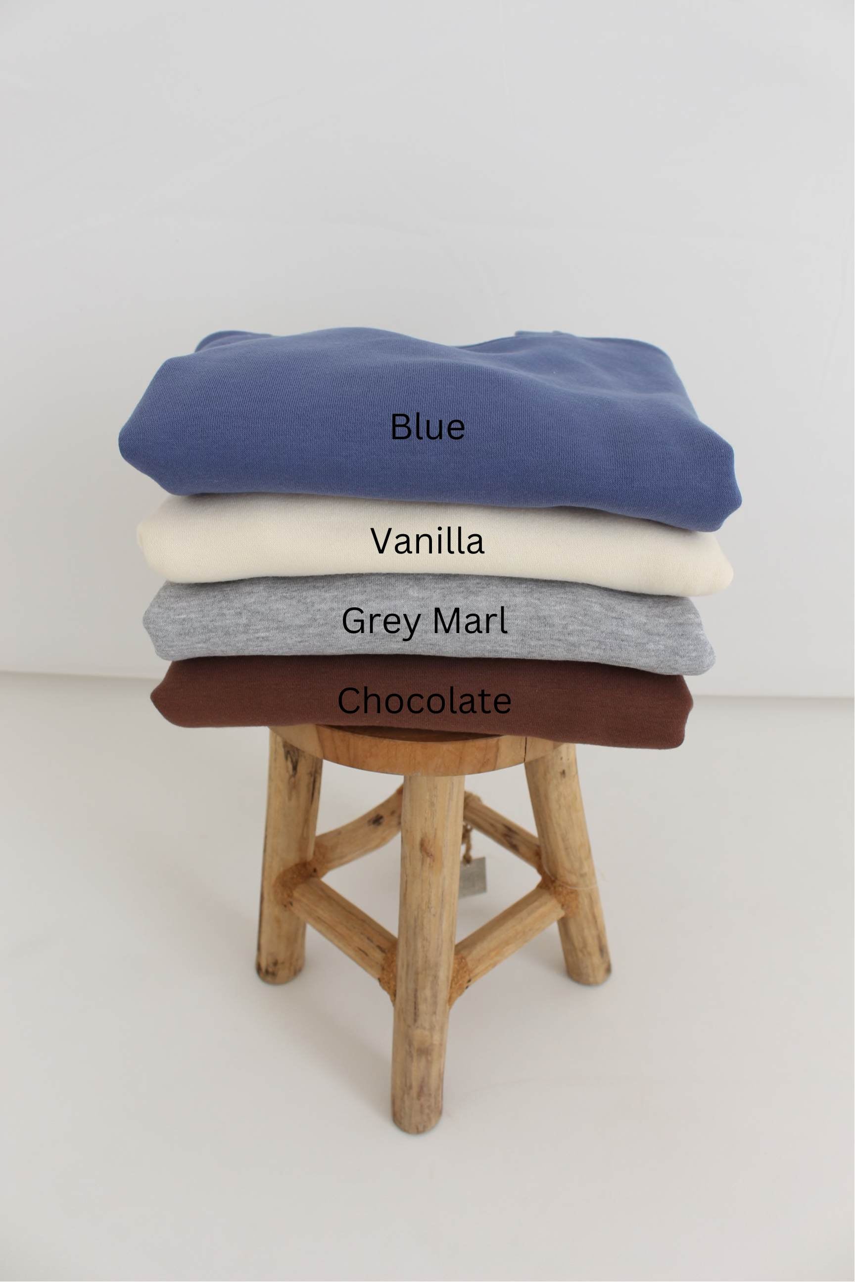 Please note our AW colours vanilla, blue and grey marl are on a very slightly different fabric base so for true matching we would suggest choosing from the colour packs in this way.