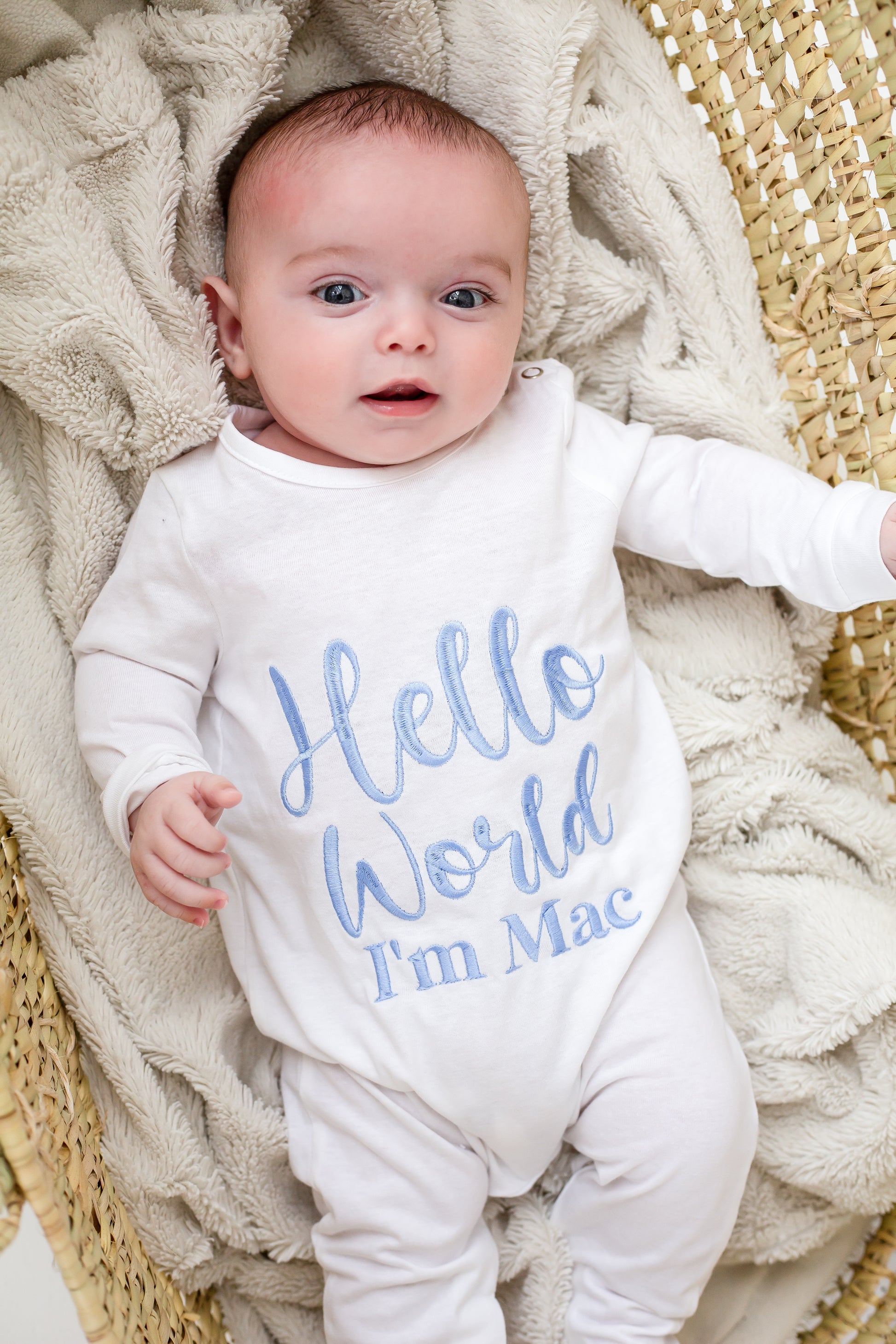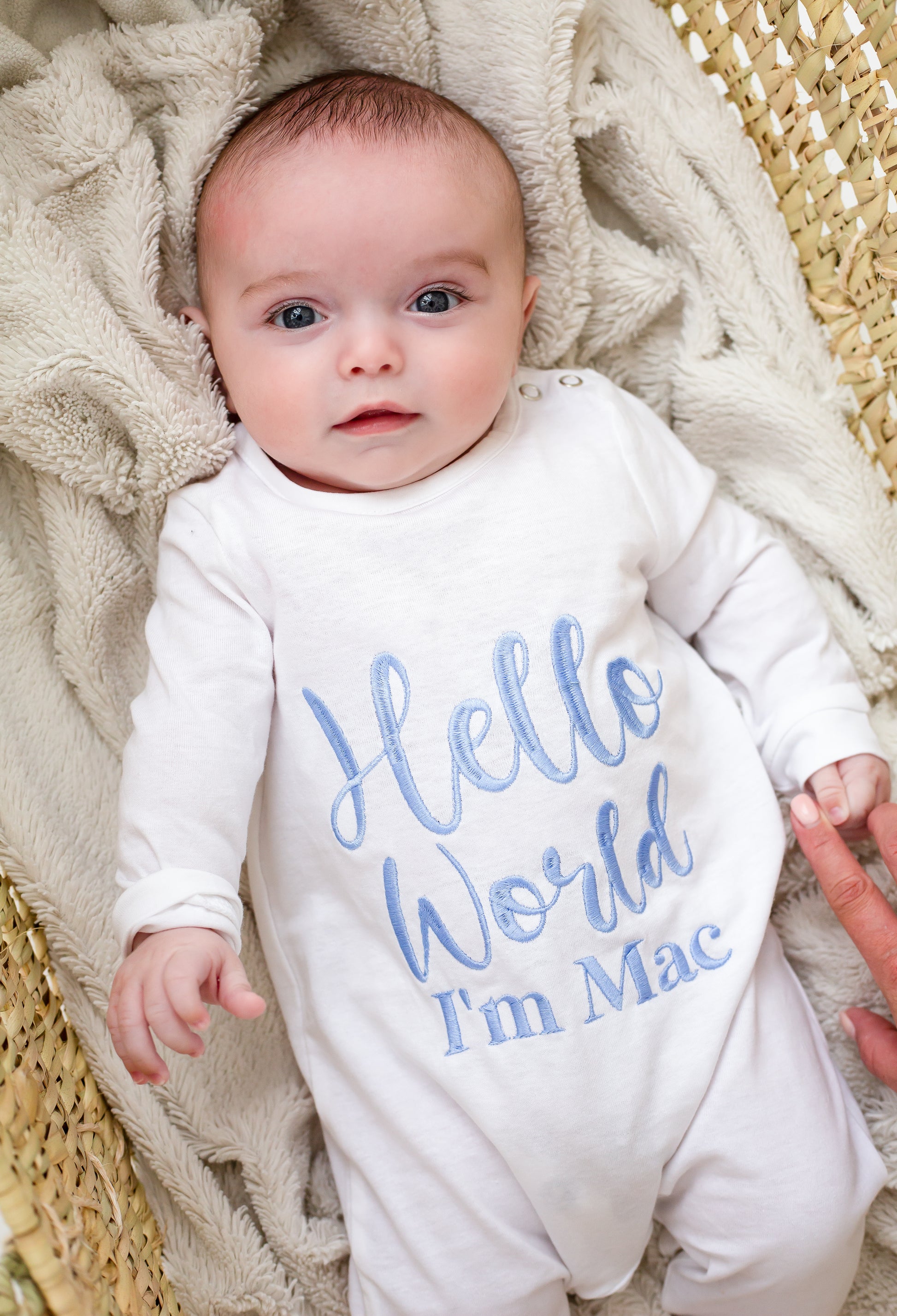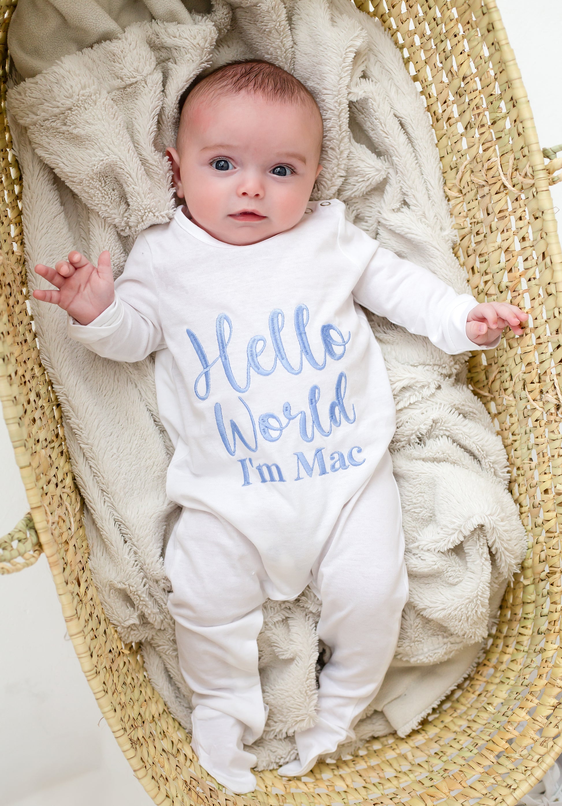 Signature 'Hello World' personalised embroidered babygro