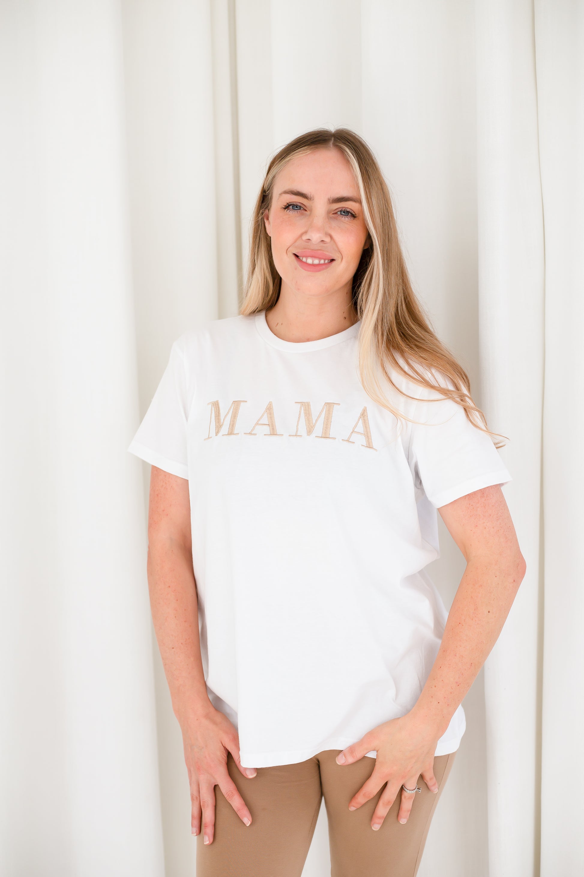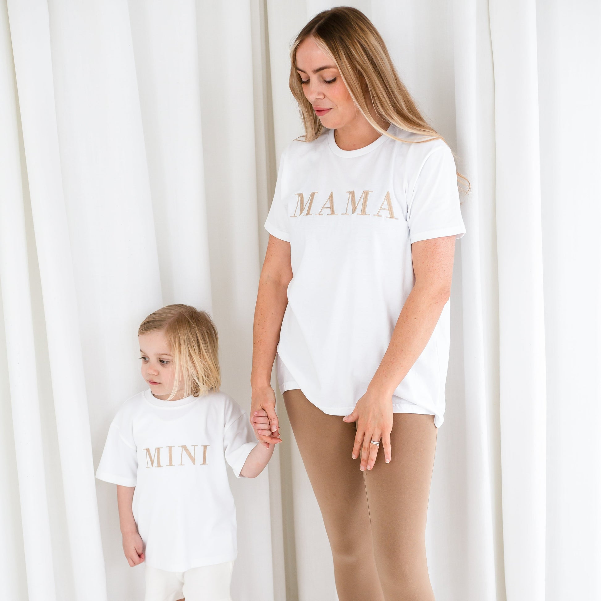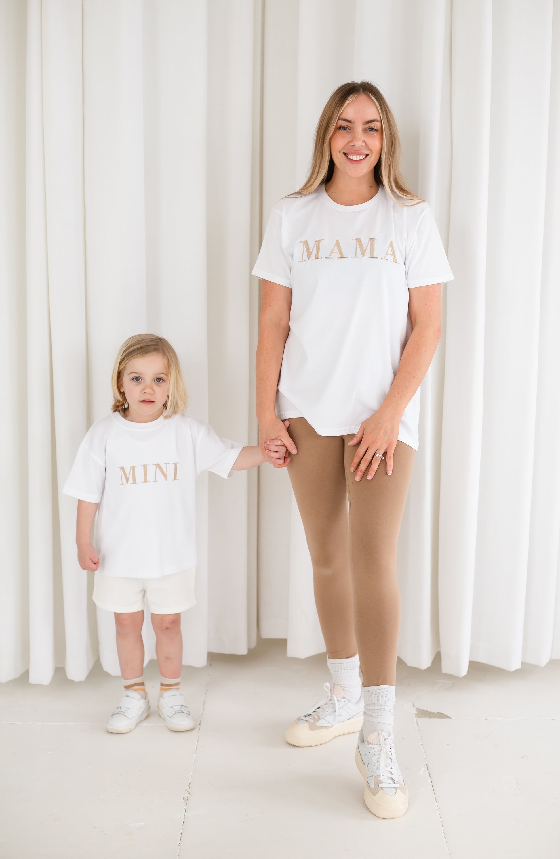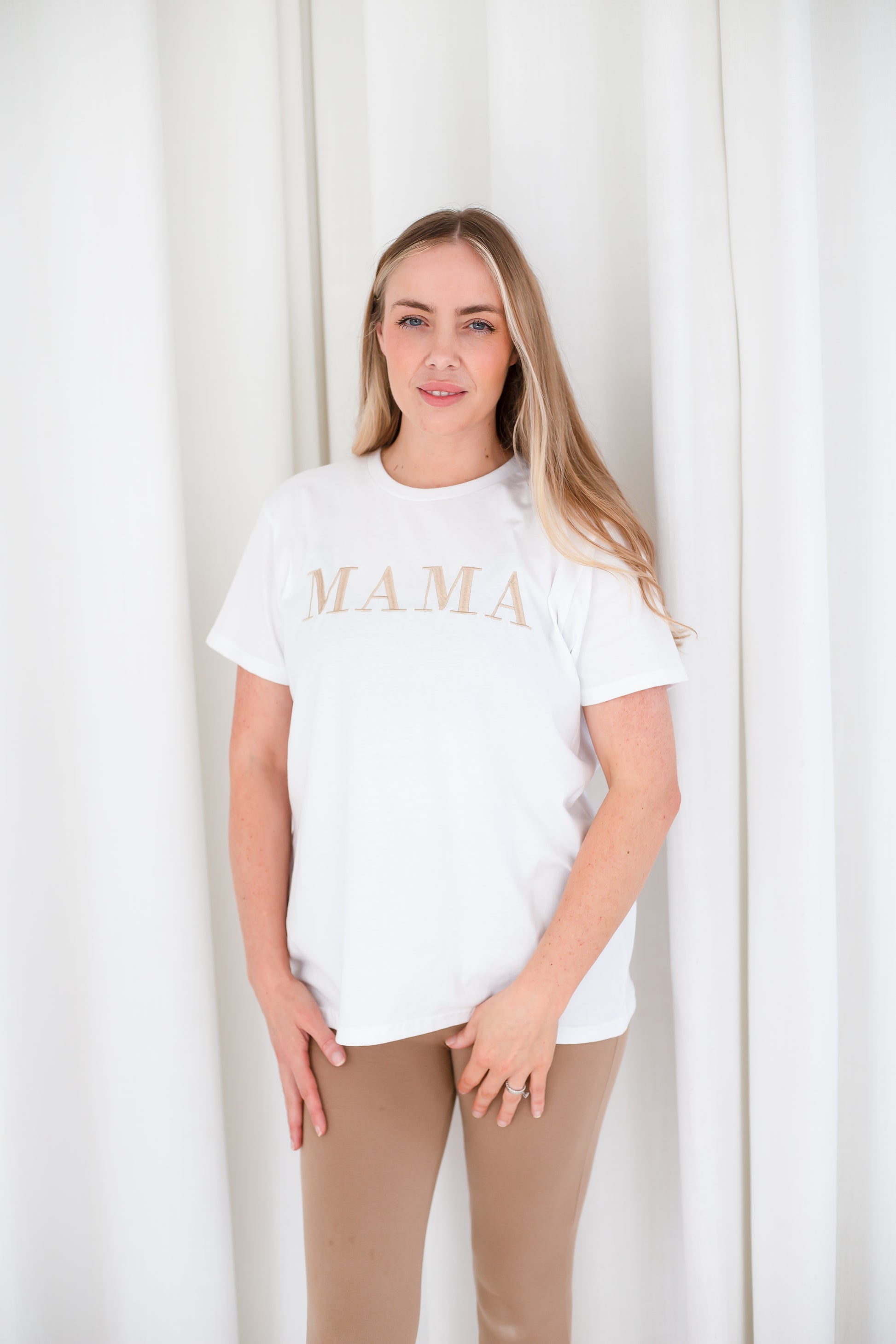 The fit is a loose, oversized fit and best converts as S- 8/10, M - 12-14L- 16-18Match with your mini in this 'MAMA.' embroidered t shirt. This style comes in ivory but you can choose from all our classic thread colours to give it a personal twist. Models wear our bestselling colour combination - ivory with soft gold. The t shirt is a premium heavy jersey quality.