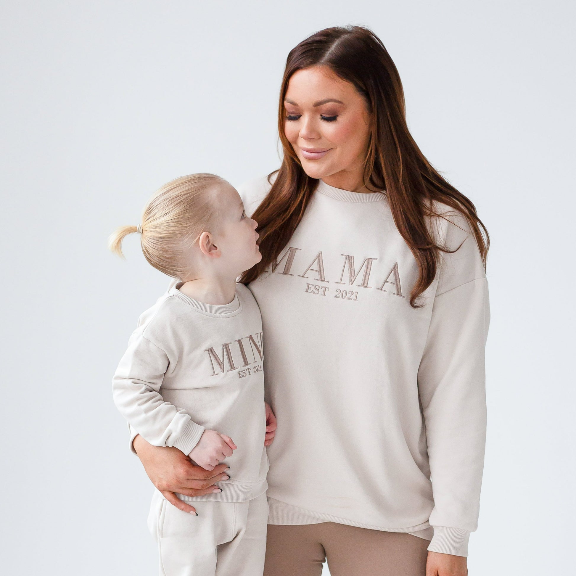 Matching MAMA EST. sweatshirt available in all the same colours as the kids sweatshirt.