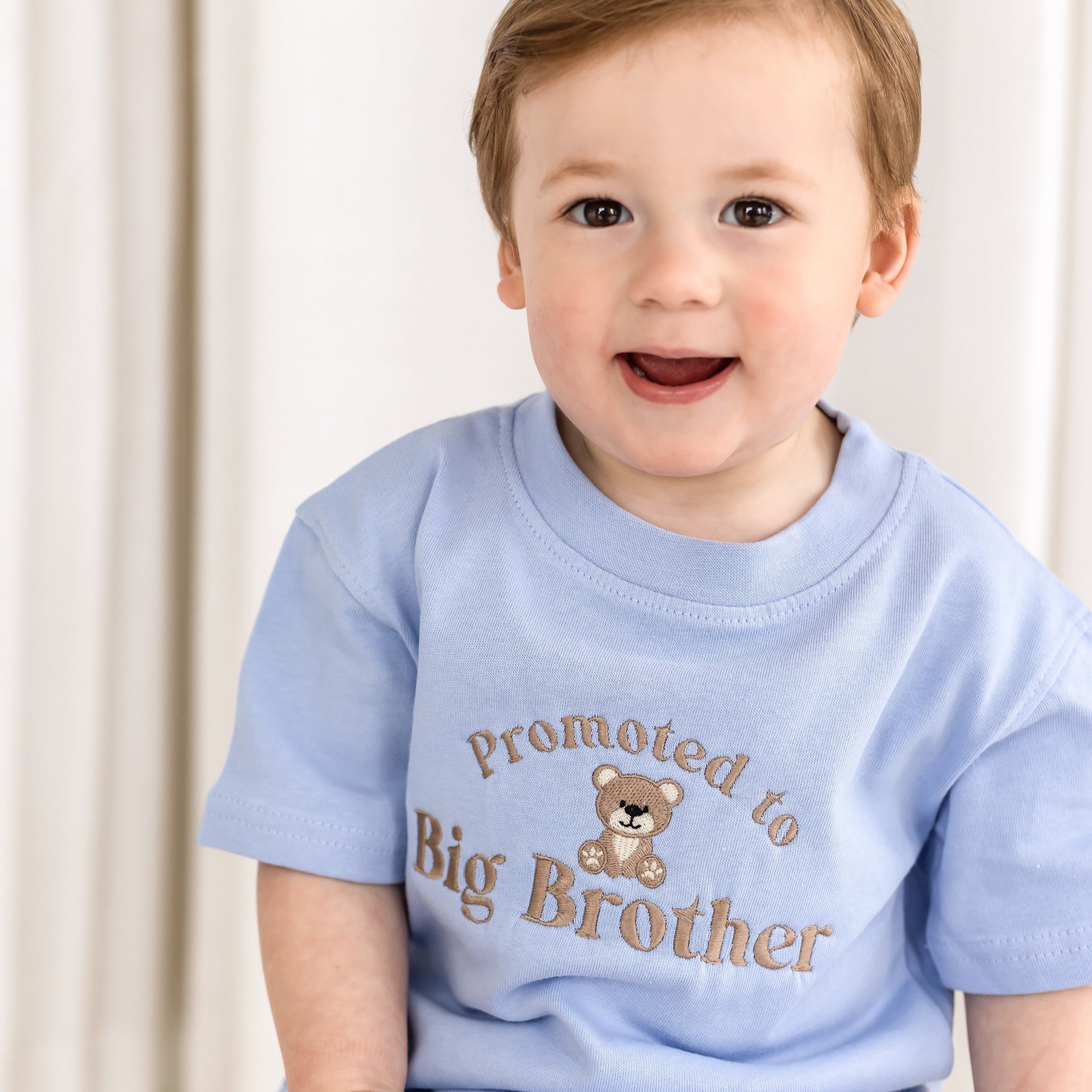Promoted to Big Brother/Sister Embroidered Bear T shirt