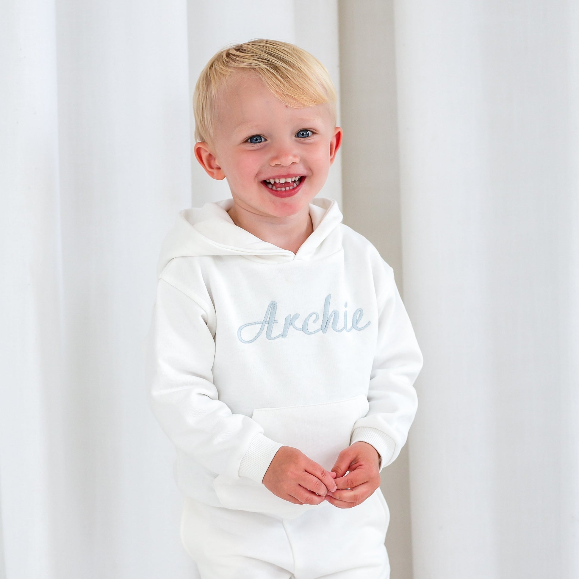 Introducing this new italic font for a twist on our personalised embroidered hoodies. Please enter child's name in the personalisation box so we can embroider their name on the design.