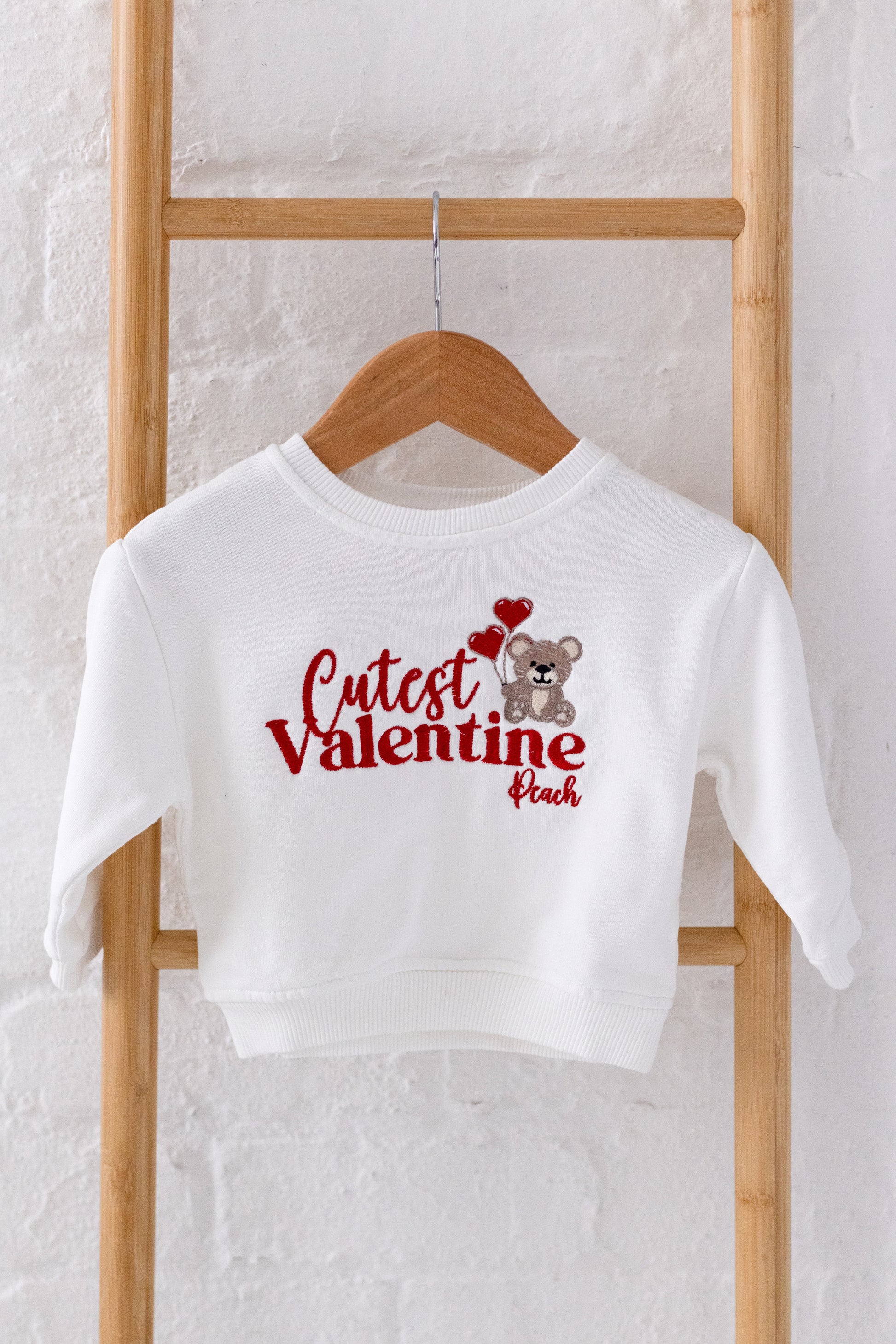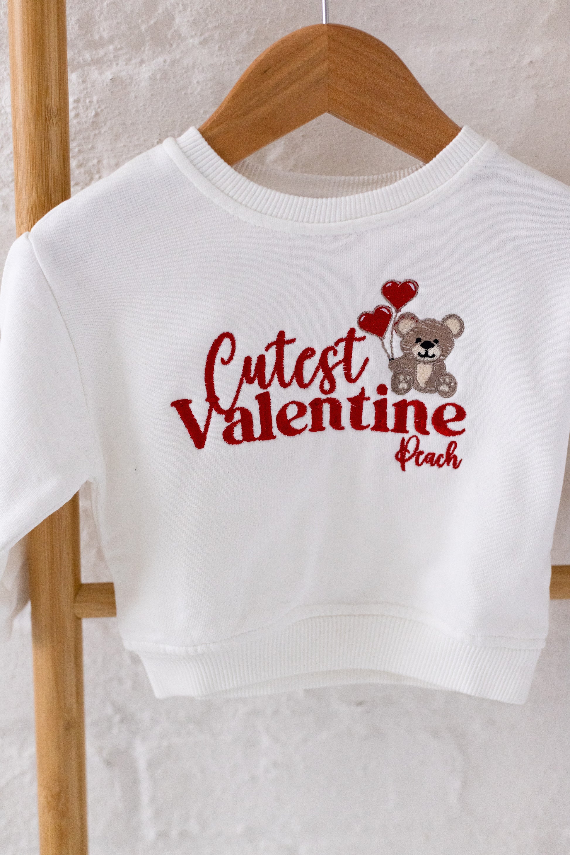 'Cutest Valentine' bear personalised name embroidered sweatshirt
